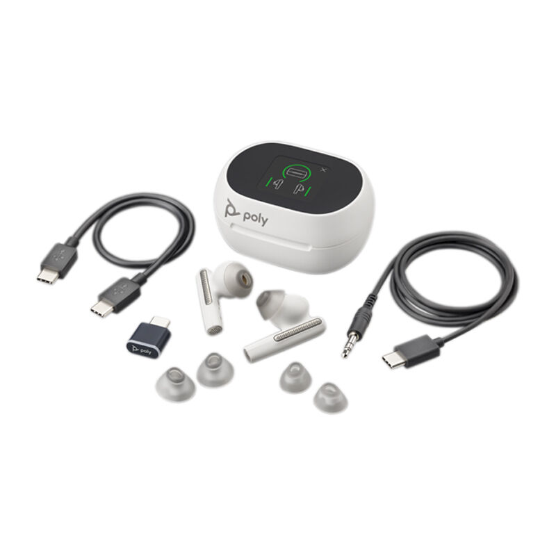 POLY VOYAGER FREE 60+ MS WITH TOUCHSCREEN CHARGE CASE,BT700C, WHITE, USB-C