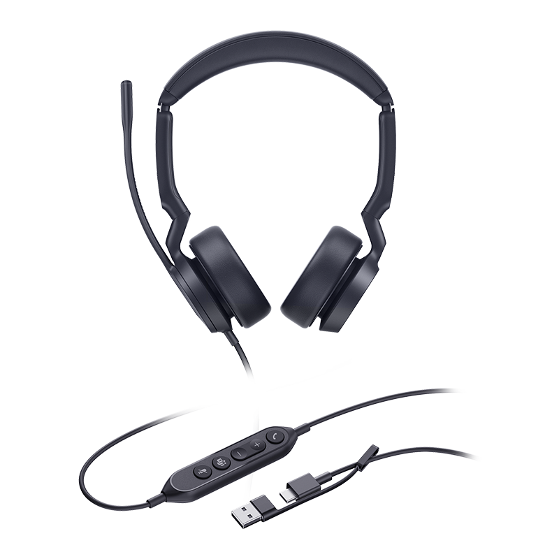 Yealink (UH44) Wired Headphones - Stereo - MS Certified - Active Noise Cancelling Microphone - USB C Native - USB C + A Adapter