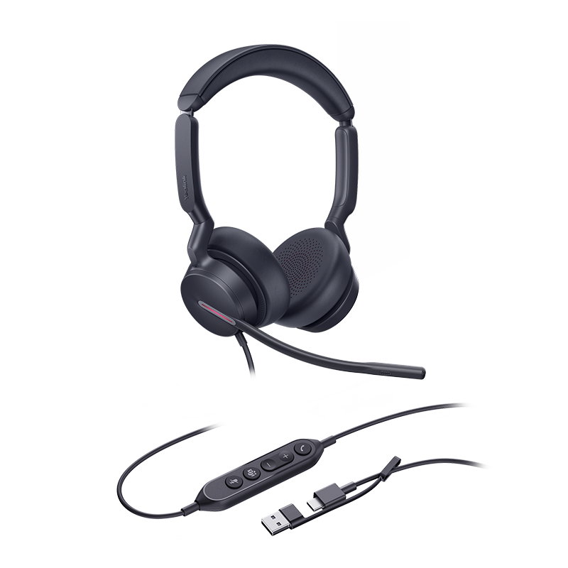 Yealink (UH46) Wired Headphones - Stereo - UC Certified - Active Noise Cancelling Microphone - USB C Native - USB C + A Adapter
